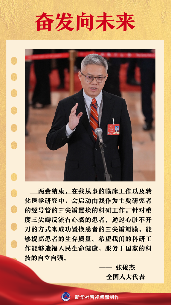南京市第一醫院副院長張俊杰代表,是一名心血管病醫療專家,同時也是一名轉化醫學領域的科技工作者。通過自主攻關,他研發出治療肺高壓器械,帶領團隊每年在全國開展300多臺微創心臟瓣膜手術,用新技術為患者重建“心門”。