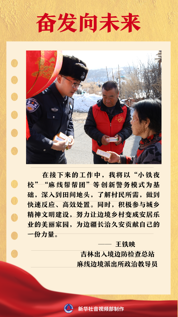 王鐵映是一名基層移民管理警察。在工作中,他創新工作方式,協調合辦“小鐵夜?!?,邀請農業專家、種植大戶傳授種植農技知識,促進鄉村經濟作物種植;推動建設村部紅色影院、綠色休閑書吧等文娛場所,促進村民精神文化水平提升;建立“麻線幫幫團”公益組織,聯合駐村工作隊,向群眾提供公益志愿服務……從警10余年的王鐵映很關注全國兩會。他告訴記者,學習了全國兩會精神后,他的干勁更足了。