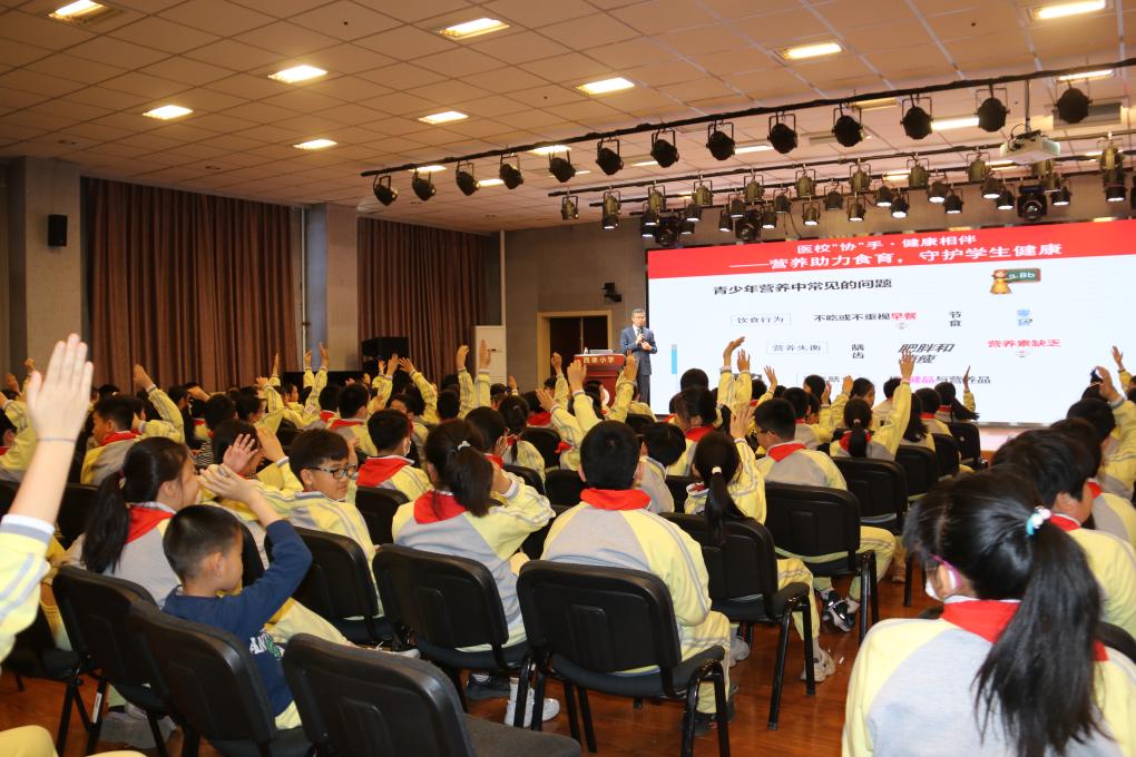 臺上,北京協和醫院臨床營養科副主任陳偉拋出一個個問題;臺下,上百位小學生積極舉手、熱情互動。