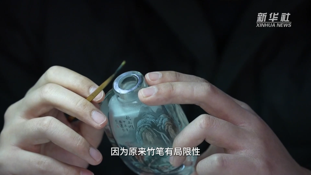 作為家族中的第三代傳承人,張鵬的兒子張鑫泰正在用年輕人的方式為內畫注入新的活力,26歲的他已經是淄博市工藝美術大師。