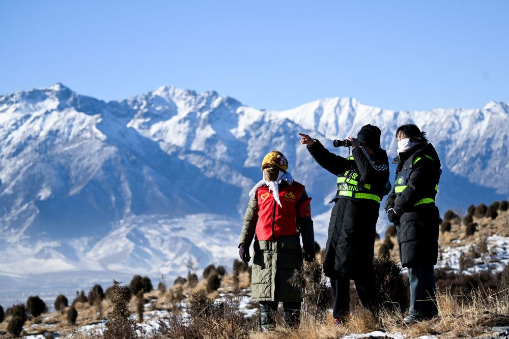 青海門源縣境內的祁連山國家公園老虎溝管護站的生態管護員在巡護祁連山(2025年1月28日攝)。新華社記者 張龍 攝