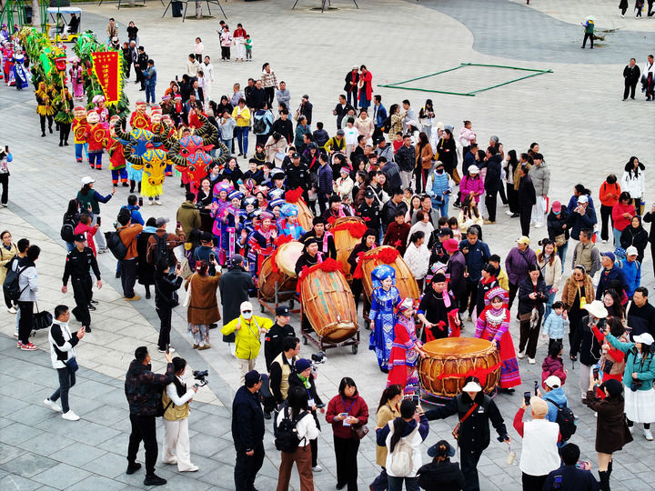 在百色近日啟動的“和美紅城 千姿百色”2025年三月三各族群眾大聯歡活動中,凌云瑤族長號、田東古壯拳、樂業壯族龍燈舞等各民族非遺表演紛紛亮相,各族群眾和游客同唱一首歌、同跳一曲舞、同過一個節。