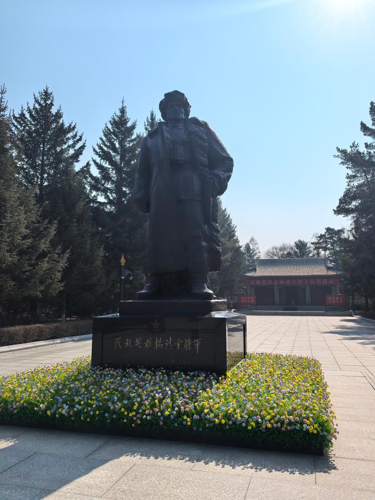 此刻,楊靖宇烈士銅像在靖宇山上巍然矗立,他雙目堅定,望向前方。