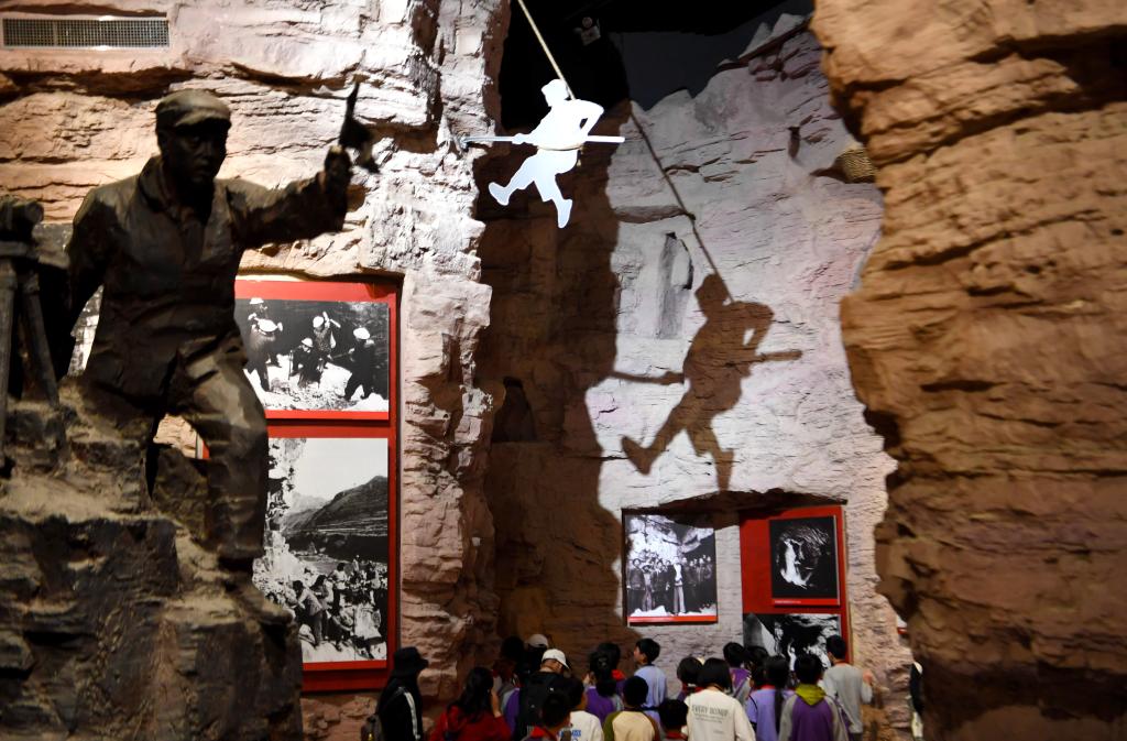 游客在河南省林州市紅旗渠紀念館參觀(2023年4月27日攝)。新華社記者 郝源 攝
