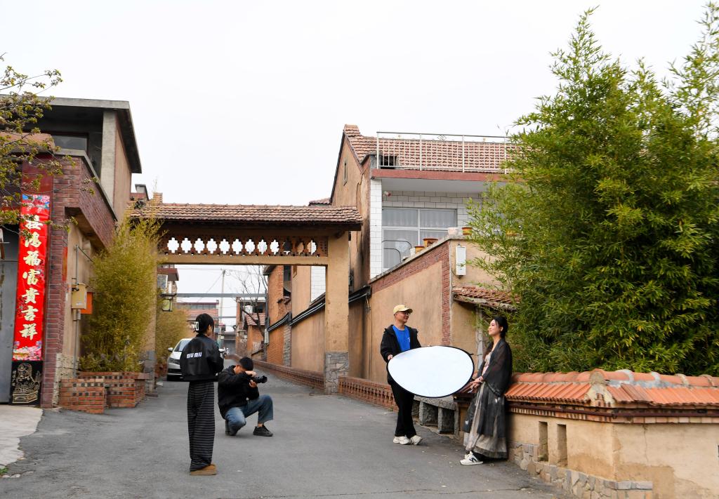 游客在河南省林州市黃華鎮廟荒村拍照游玩(2025年3月26日攝)。新華社記者 郝源 攝