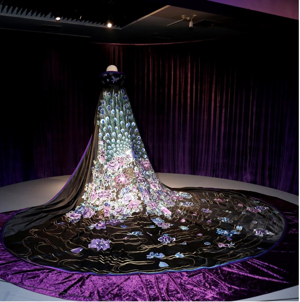 再如織染繡作品《涌》,在傳統臺繡工藝基礎之上,創造性使用纖藝繡、立體浮雕手法,實現了輕盈并可再堆塑的3D高浮雕效果。