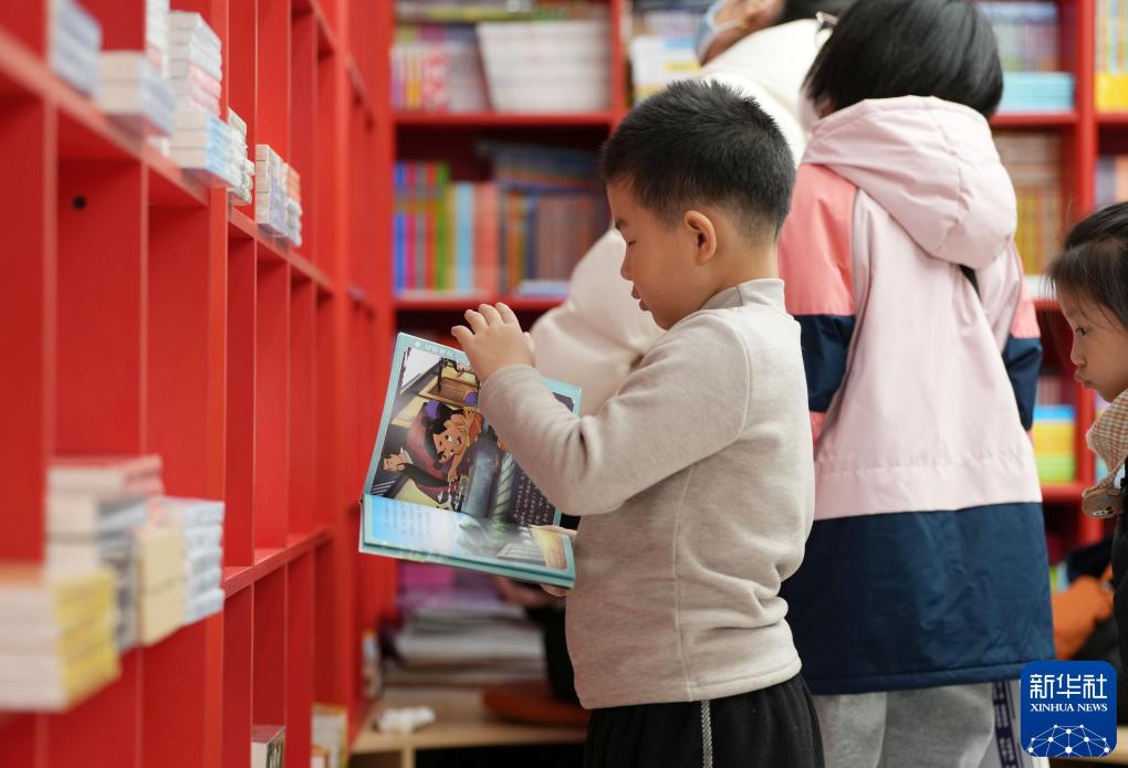 2025年3月8日,一位小讀者在沈陽新華書店馬路灣店翻閱漫畫書。新華社記者 李鋼 攝