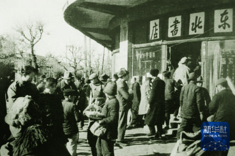 1948年沈陽解放后,東北書店馬路灣門市店吸引了眾多讀者。新華社發
