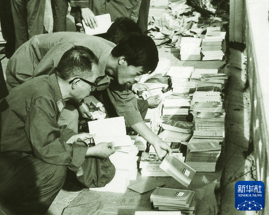 1977年恢復高考后,讀者在馬路灣書店購書備考。新華社發