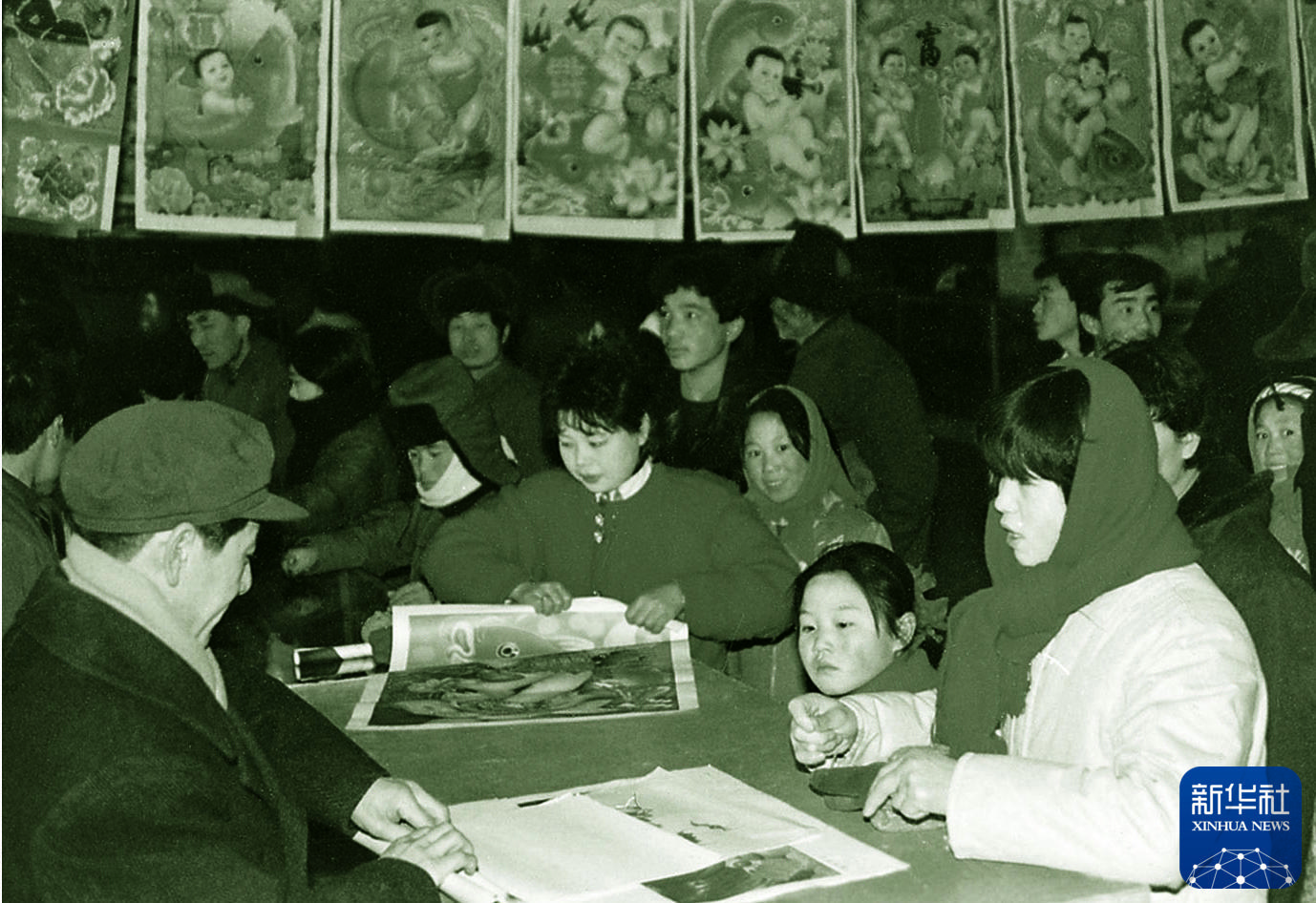 20世紀80年代,人們在馬路灣書店選購年畫。新華社發