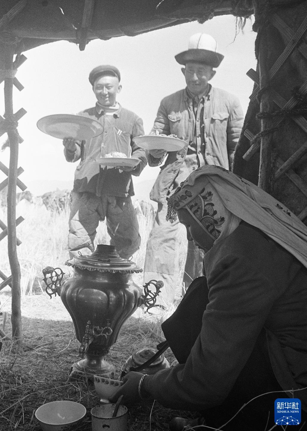 在新疆鞏乃斯河川,草原上來了遠方的客人,好客的牧民準備熱情的招待。1964年7月4日發