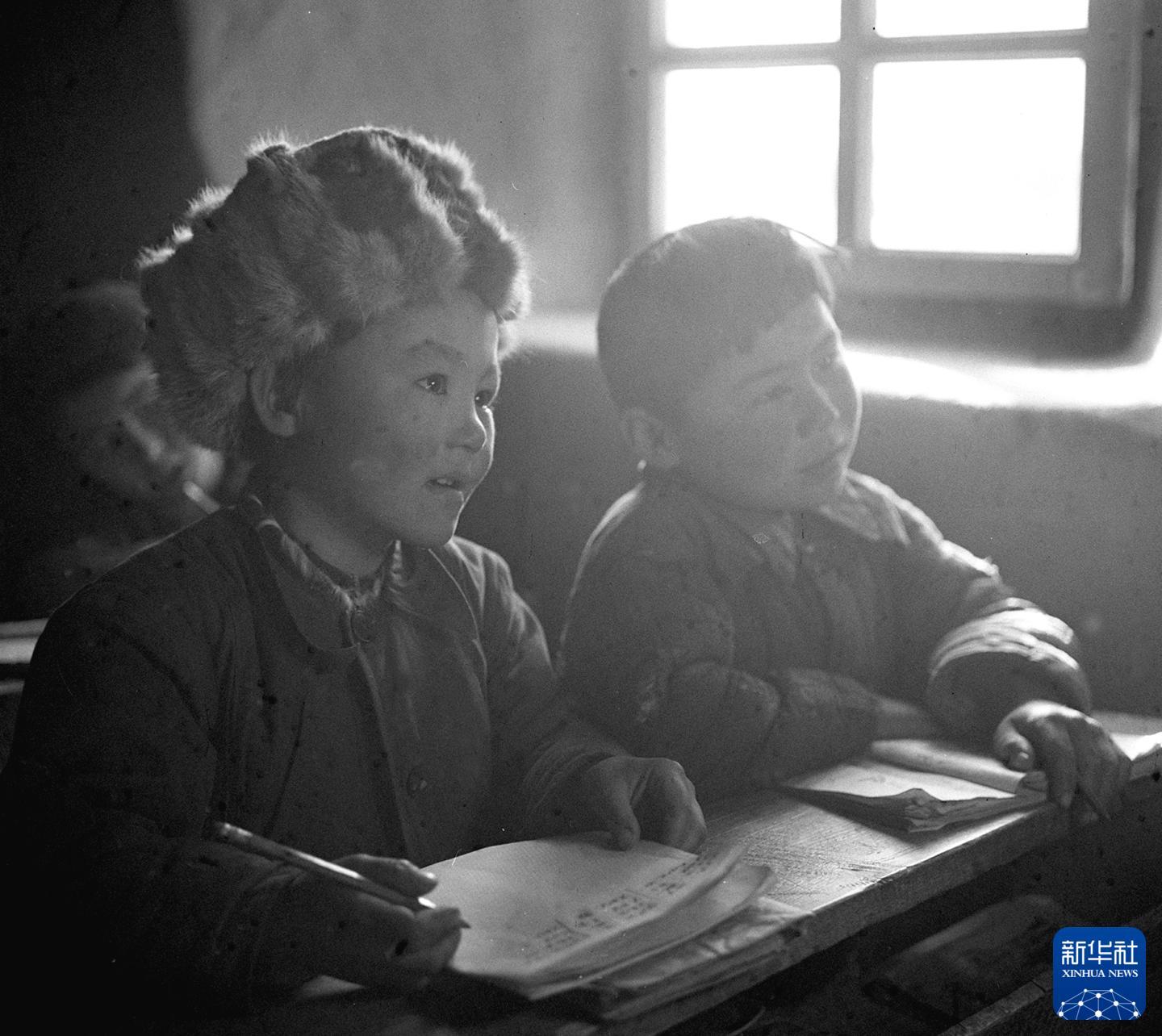 新疆維吾爾自治區伊犁哈薩克自治州福??h東風公社牧區小學的哈薩克族兒童在課堂上。這所牧區小學根據牧區生產特點,隨著牧民轉移,給牧民子女上學提供了便利條件。1965年5月24日發