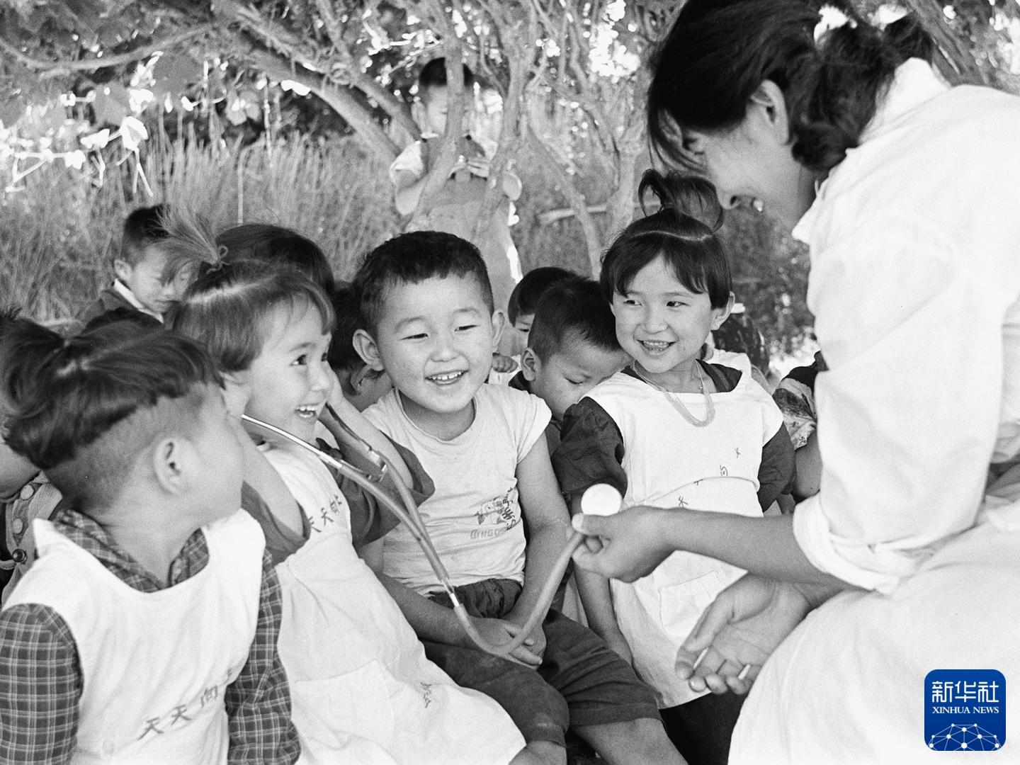 在新疆伊犁哈薩克自治州鞏留縣,縣醫院的醫生定期來幼兒園給孩子們做體格檢查?!拔逡弧庇變簣@有哈薩克、維吾爾、漢、回等民族的兒童在一起愉快的生活。1964年8月30日發