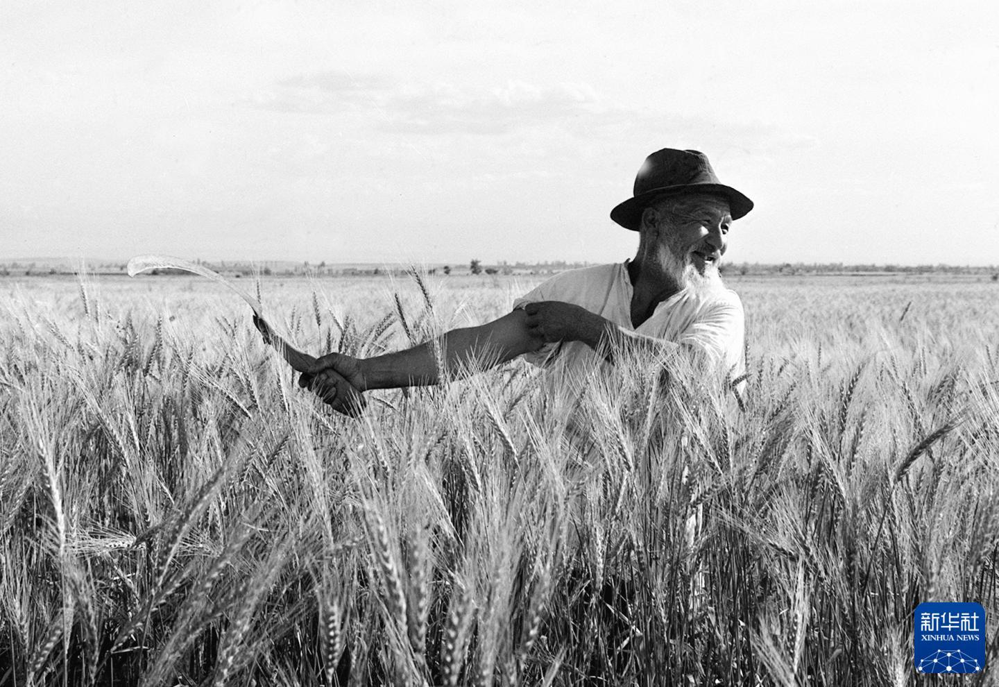 維吾爾族老農、五好社員左爾東準備割麥。1963年7月22日發