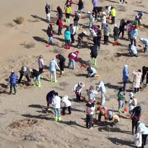 這里是甘肅省武威市民勤縣,“請到民勤種棵樹”活動今年開展以來,來自全國各地的志愿者已達3萬人次,治沙面積達4500余畝,種植梭梭、花棒、檸條等沙生植物150多萬棵,在防沙治沙、生態修復方面取得了明顯效果。