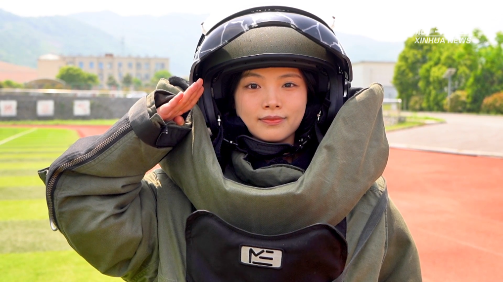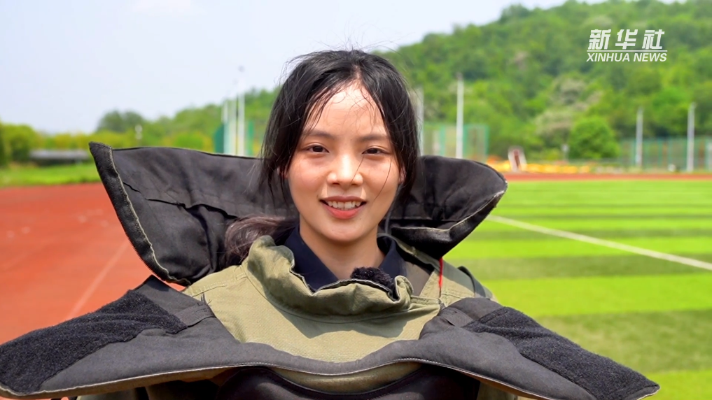 28歲的劉敏銳是安徽省銅陵市公安局特警支隊二大隊的一名排爆民警,體重只有100斤的她需要穿著70多斤重的排爆服處置涉爆警情以及進行跑步、穿針引線等日常訓練。