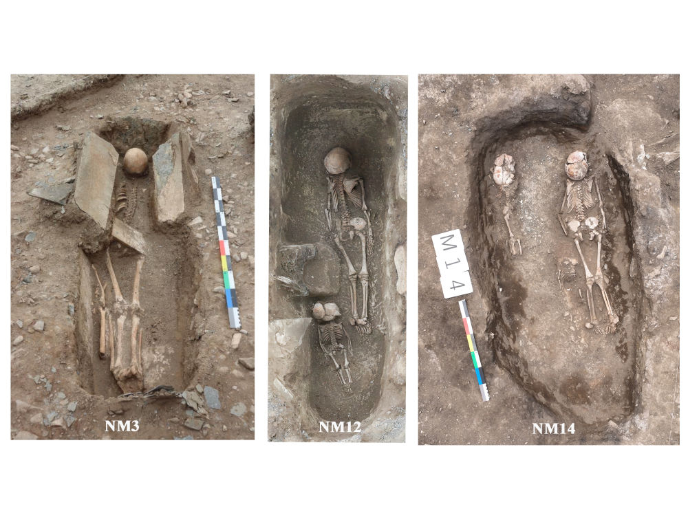 瑪不錯第一期遺址(距今4500-4000年)墓葬中俯身直肢石棺墓和土坑墓(資料照片)。新華社發(西藏自治區文物保護研究所供圖)