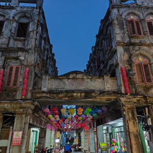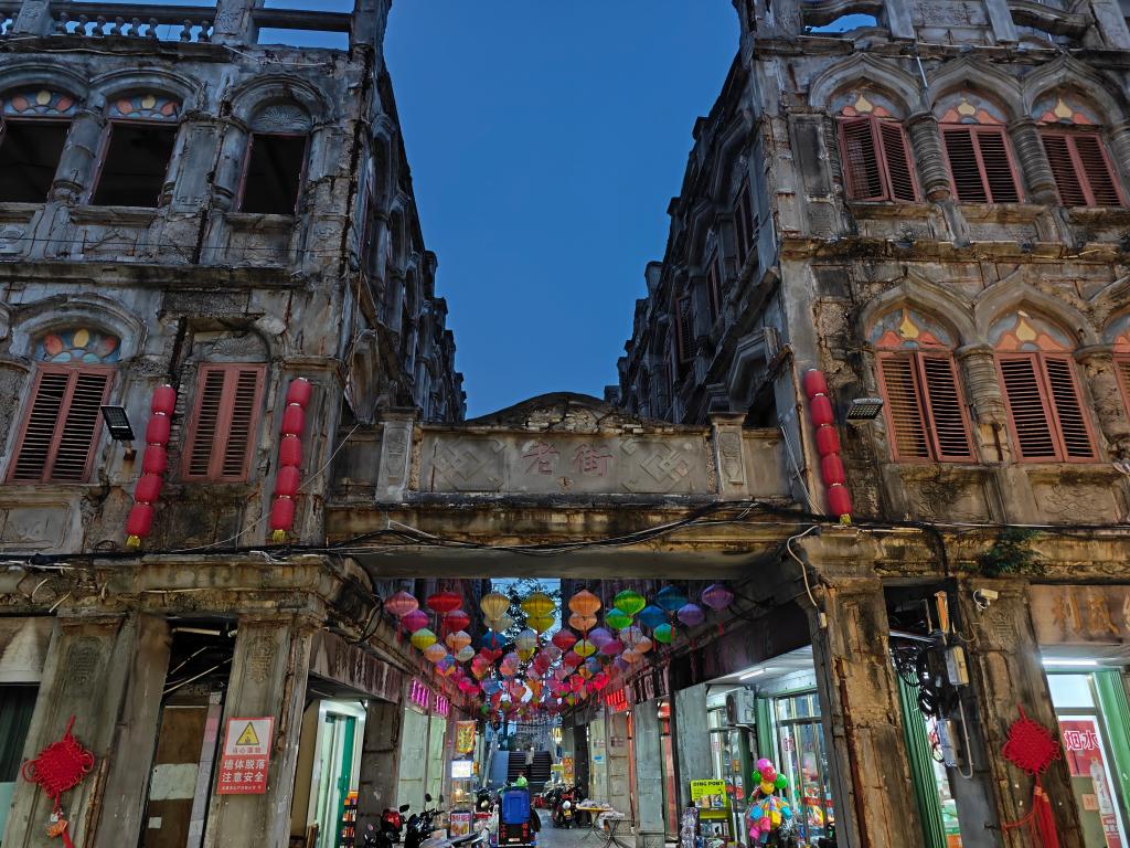 整條老街百米之余,街道兩旁一棟棟古老質樸的騎樓建筑,融合了南洋風格、巴洛克風格與中式傳統元素。雕刻著精美圖案的廊柱、造型各異的女兒墻,盡顯南洋建筑的格調;而中式的傳統圖案和雕刻,又散發著濃濃的本土韻味。