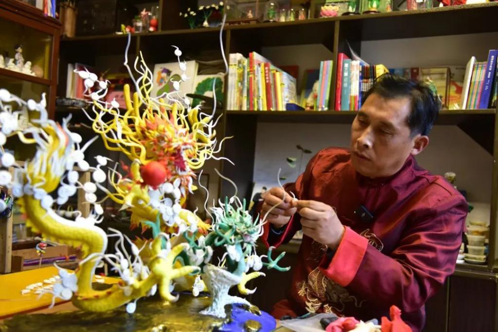 面塑,也叫面花、面人,是中國古老的民間藝術之一。陳氏面塑源于清道光年間,2019年被列入鄭州市非物質文化遺產名錄。今年48歲的陳道勇,是陳氏面塑第五代傳承人。