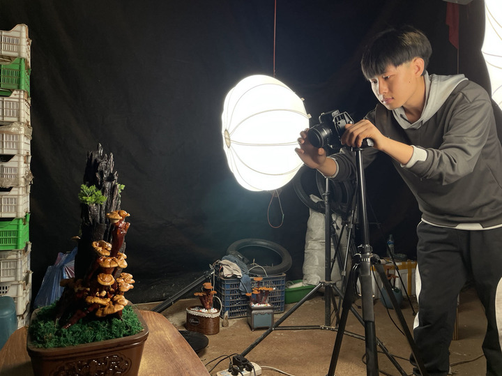在營口市老邊區柳樹鎮東柳村,返鄉大學生任嘉輝通過直播售賣靈芝。新華社記者武江民 攝