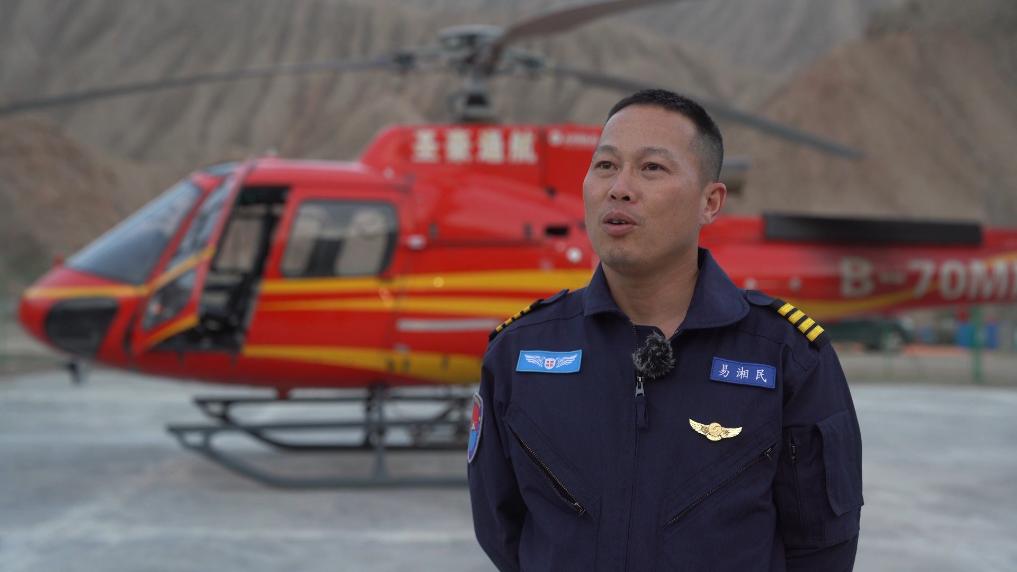 直升機飛行員易湘民從事山地物探吊裝作業已經6年了。