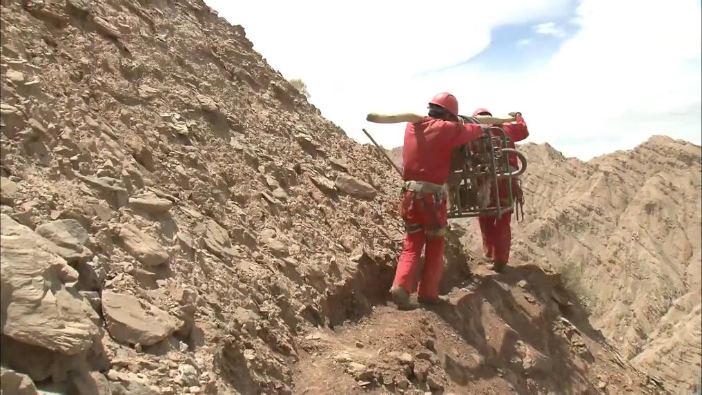 常規山地鉆機每臺總重八九百公斤,拆分之后最重一個單件100多公斤,再加上鉆桿和油料、水,以往都需要工人扛著抬著一步步在山里攀爬。今年2170隊對山地鉆做了一個改進,極大地減輕了重量。