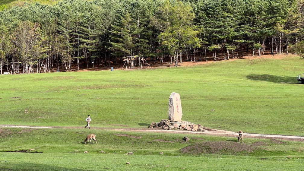 這是游人在金山鹿苑中游玩。新華社記者 張玥 攝