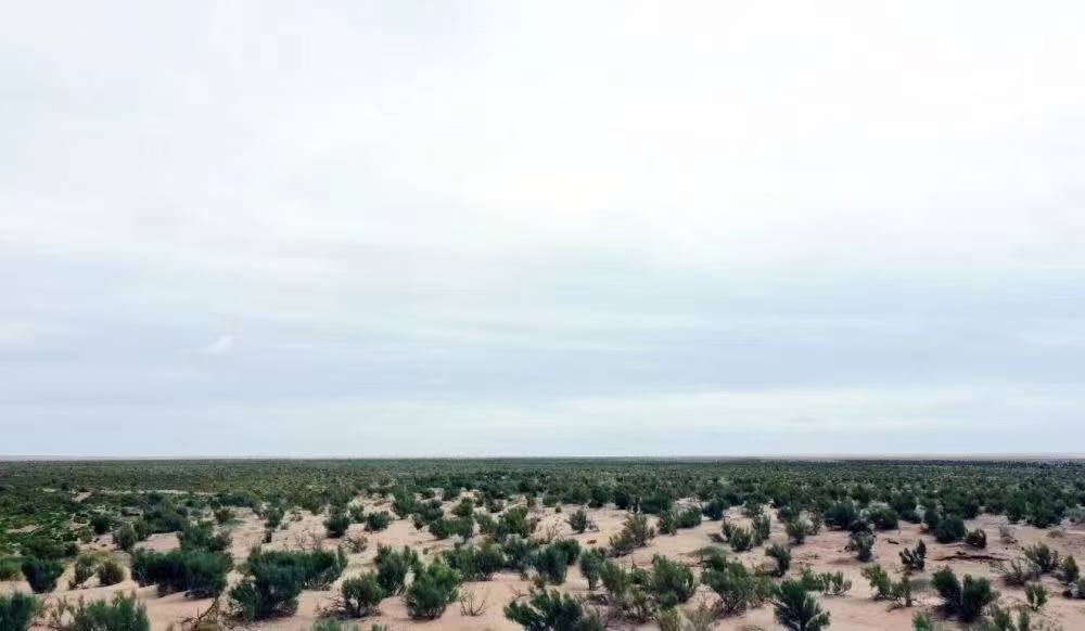 烏拉特后旗巴音查干嘎查人工種植梭梭接種肉蓯蓉基地。新華社發(楠丁 攝)