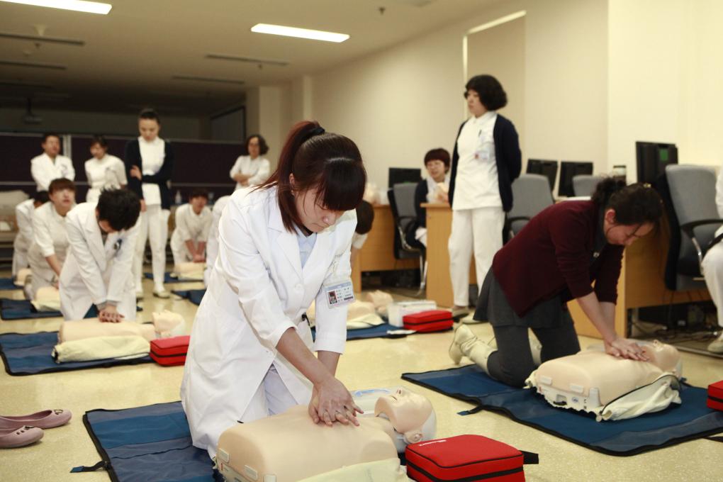 泰達國際心血管病醫院醫護人員正在接受專業心肺復蘇培訓。(圖片來源:泰達國際心血管病醫院)
