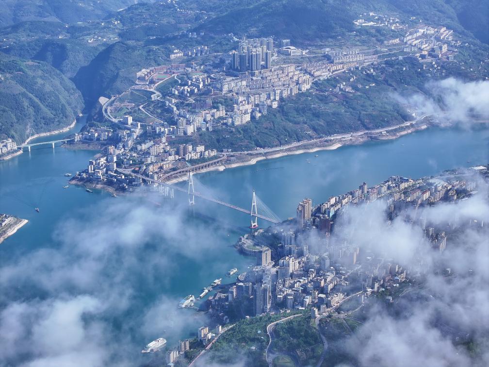 2025年4月10日,一場春雨過后,位于湖北省西部山區恩施土家族苗族自治州巴東縣的長江三峽巫峽口霧氣繚繞,風景如畫,吸引眾多游客游覽觀光。新華社發(趙軍 攝)