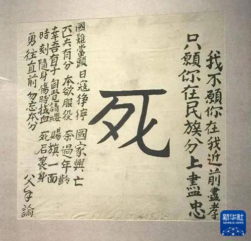 在四川建川博物館的川軍抗戰館中,陳列著一面“死”字旗。這是抗戰時期四川人王者成送兒子王建堂從軍抗戰、臨行送兒的一面旗幟,正中一個大大的“死”字。