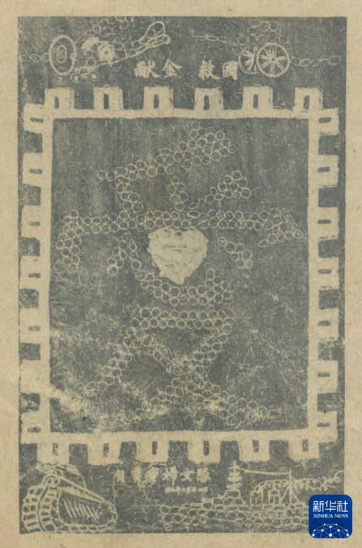 1944年7月,自貢婦女用捐獻的金戒指、金手鐲等縫制的“愛”字圖案。