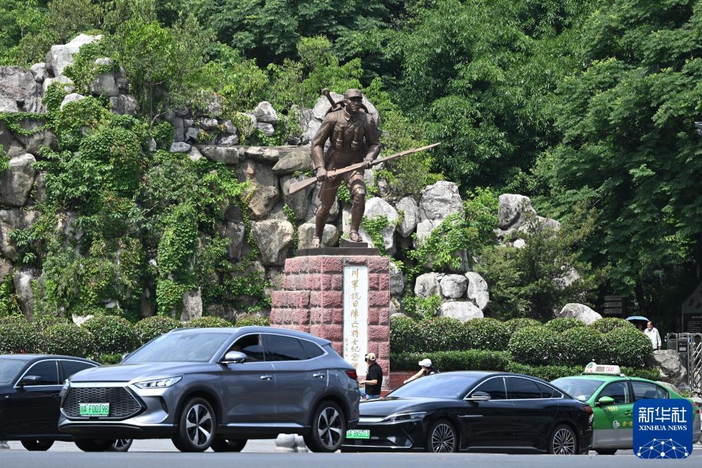 圖為位于成都人民公園(原少城公園)的“川軍抗日陣亡將士紀念碑”。1944年7月7日,由著名雕塑家劉開渠設計的“川軍抗日陣亡將士紀念碑”在成都東門城門洞落成,成都市民通常稱為“無名英雄紀念碑”。1989年8月15日,由年過八旬的劉開渠直接指導重鑄的“川軍抗日陣亡將士紀念碑”在成都二環路萬年場路口落成,彌補了銅像因故拆毀的遺憾。2007年8月15日,銅像遷建于此,回到當年抗戰川軍出發地。新華社記者 劉坤 攝