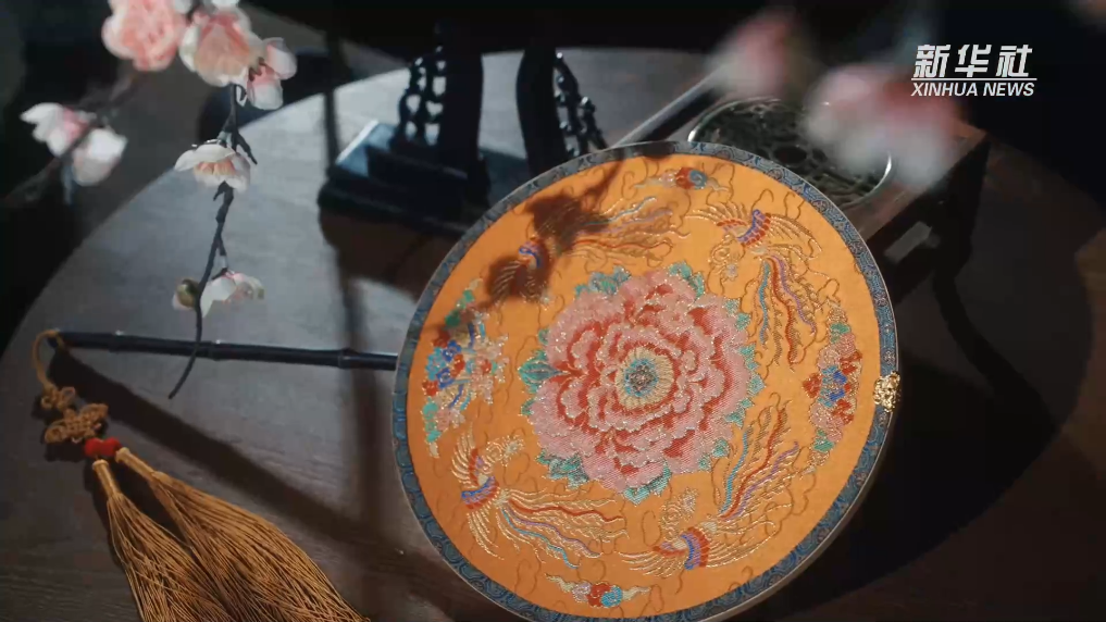 現場還展示了一款全新宋錦與云錦結合的現代藝術品《花開盛世》雙面團扇。該作品是國家級非物質文化遺產項目南京云錦木機妝花手工織造技藝代表性傳承人周雙喜與國家級非物質文化遺產項目宋錦織造技藝代表性傳承人錢小萍首次合作,雙非遺技藝融合,精工細作,以現代工藝美術的方式進行表達。