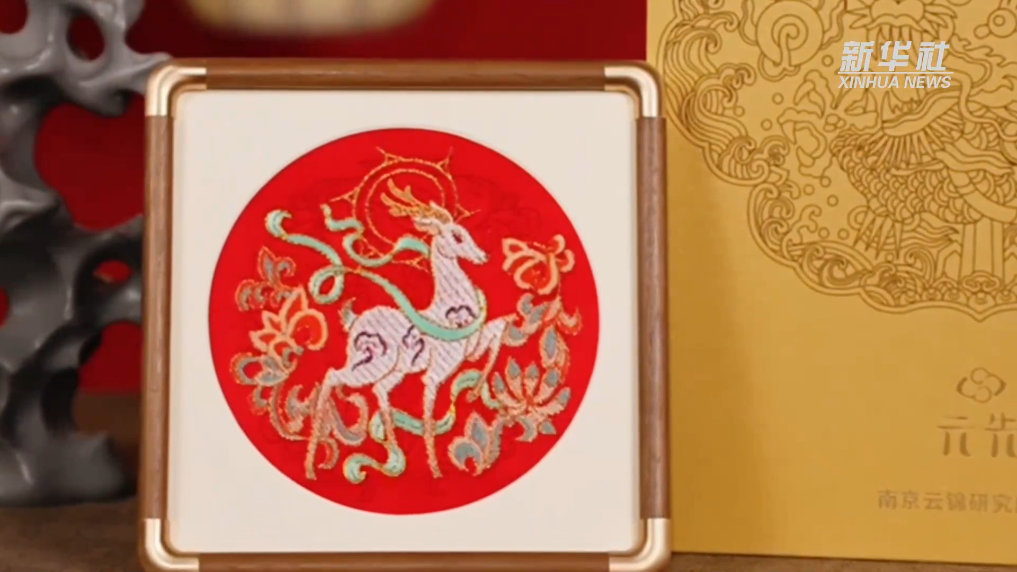 從“指尖藝術”到“指尖經濟”再到“指尖產業”,南京云錦博物館與東南大學共同打造“云錦+彝繡”鄉村振興項目。在活動現場,新作品《一鹿繁花》首次發布,以云錦為底,以彝繡表達的“神鹿”為形象,寄托著對美好生活的期望。