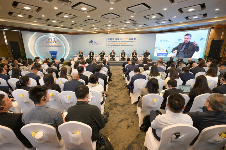 博鰲亞洲論壇2025年年會舉行“點亮藍色,共建‘和平、友好、合作’的南?!狈终搲?025年3月27日攝)。新華社記者 蒲曉旭 攝