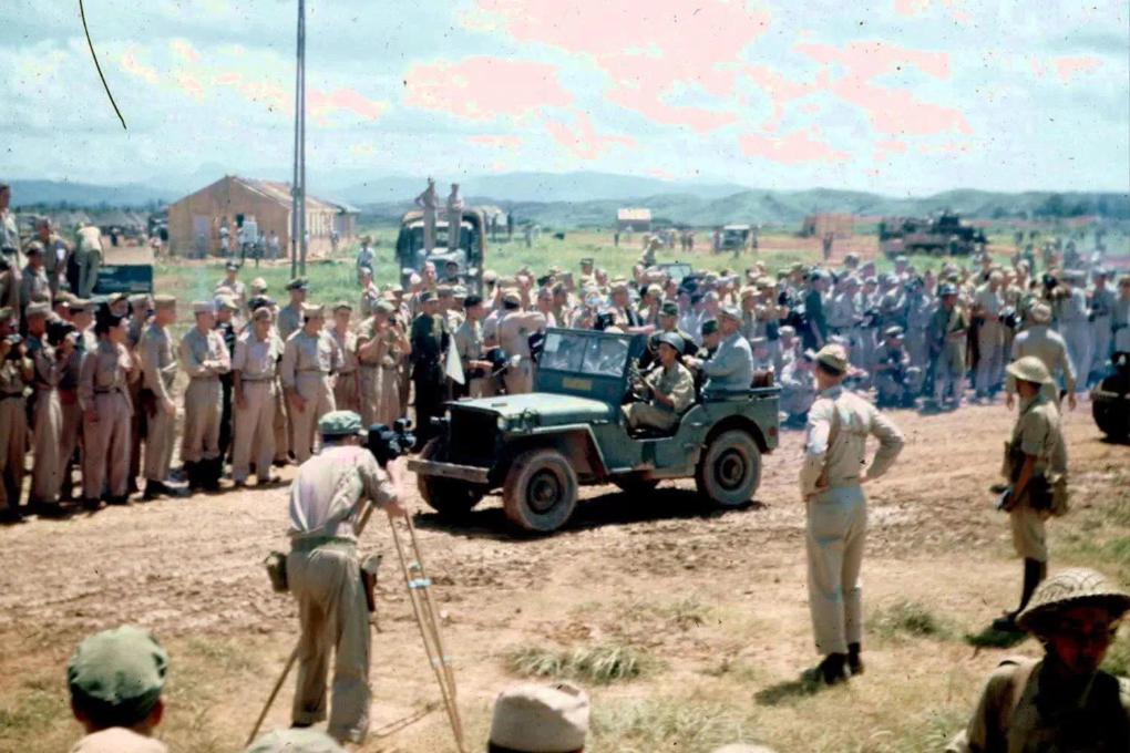 這是約瑟夫·德拍攝的插著白旗的日本投降車。(飛虎隊紀念館供圖)