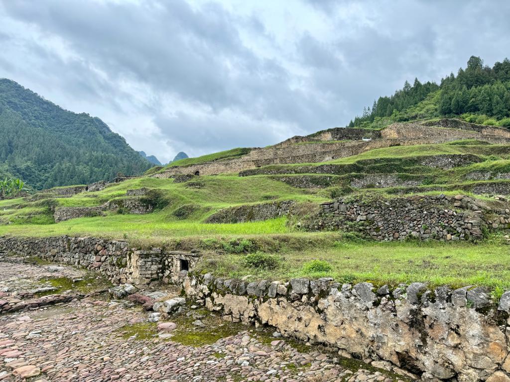 漫步遺址區,只見綿延起伏的山地間散落著功能不一的遺址點,城墻、磚雕、建筑、街巷有序分布,道路兩旁不時還出現多戶人家。