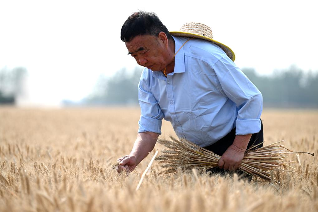 5月28日,徐淙祥在田間查看小麥的成熟情況。新華社記者 黃博涵 攝
