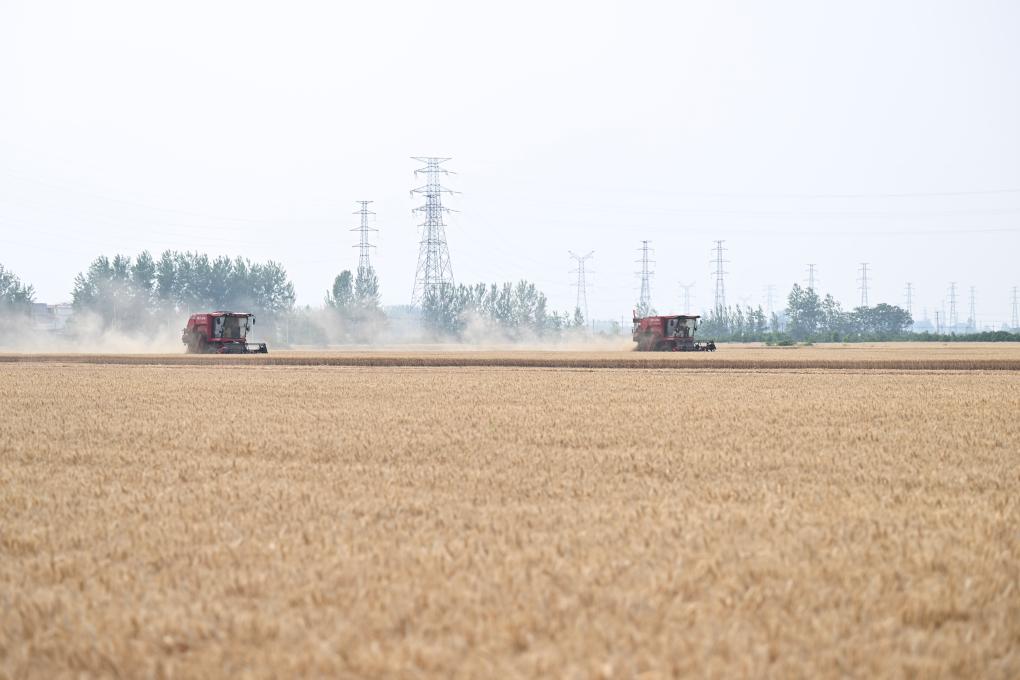 5月28日,收割機在徐淙祥種植的麥田里收割小麥。新華社記者 黃博涵 攝