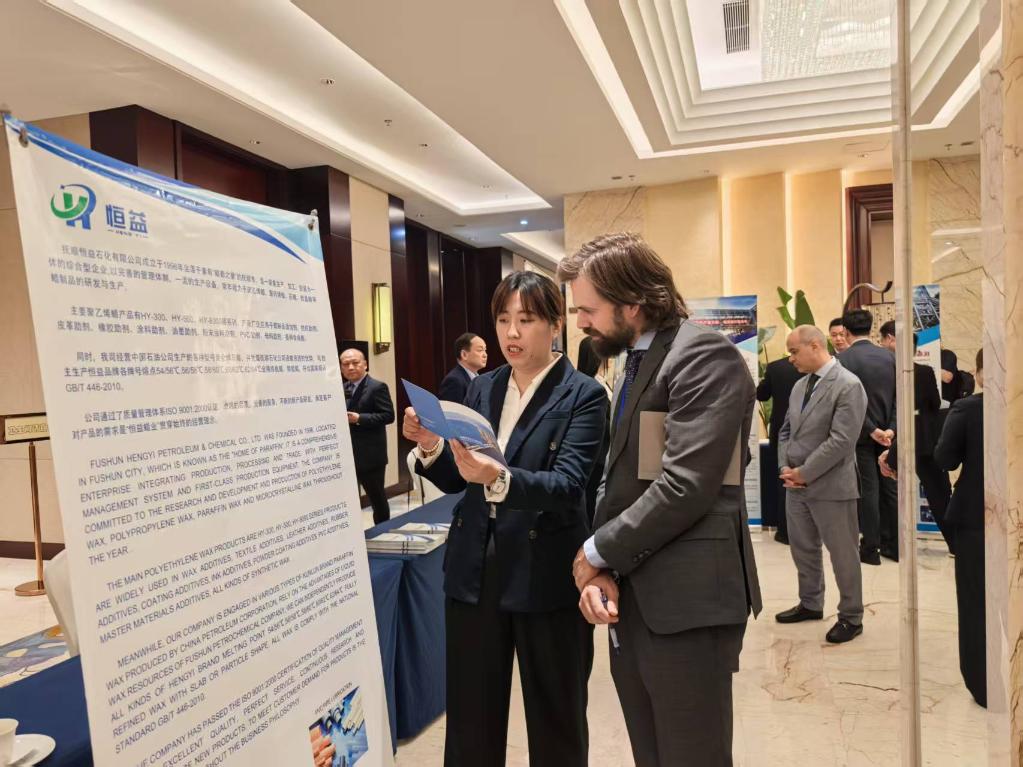 6月12日,駐華使節參觀遼寧石化企業展區并與工作人員交流。新華社記者成欣 攝