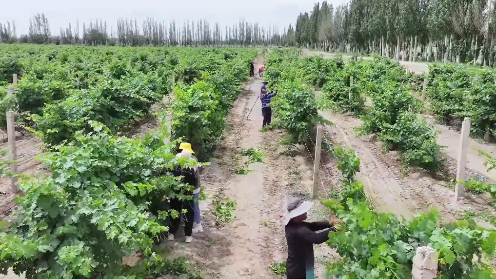 眼下,新疆巴音郭楞蒙古自治州和碩縣的3萬多畝葡萄進入夏季田間管理的關鍵時期。當地通過“企業+合作社+農戶”模式,既保障了葡萄品質,又創造了超過6個月的穩定就業崗位。