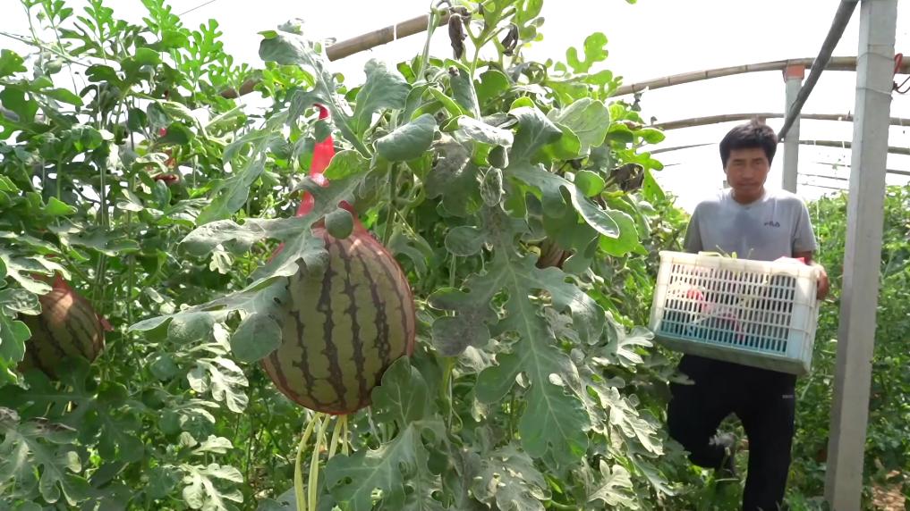 在觀寨鎮南哈口村,3300畝果蔬大棚連成一片,村民們忙碌著采摘、育苗、售賣。