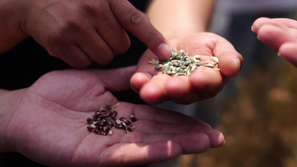 在濟寧市梁山縣,位于“小麥科技小院”示范基地的6萬畝“五彩小麥”也進入收獲時節。