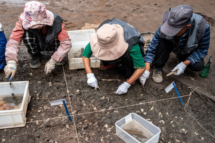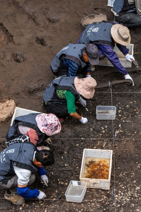 考古工作者在云南河泊所遺址現場進行清理發掘工作(2025年4月24日攝)。新華社記者 胡超 攝