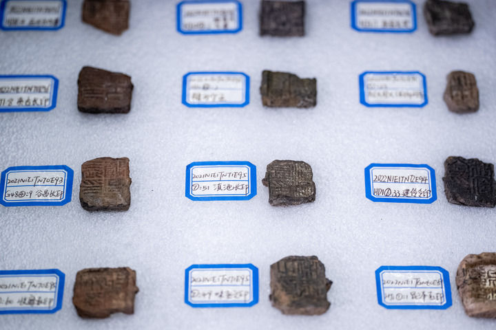 云南省昆明市晉寧區河泊所遺址出土的官印封泥(2025年4月24日攝)。新華社記者 胡超 攝