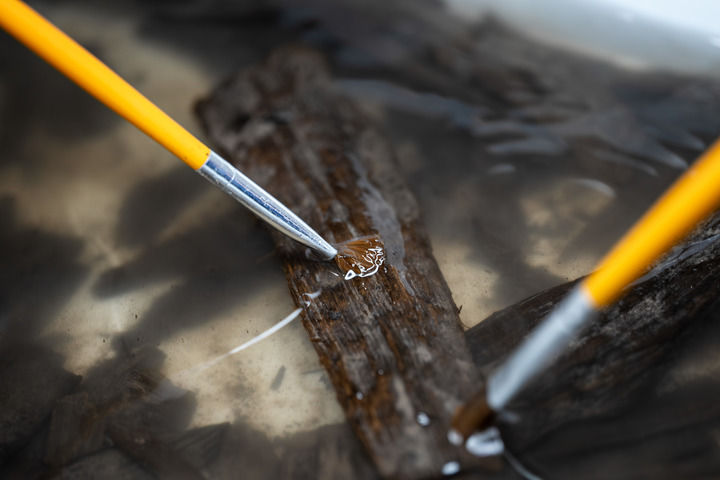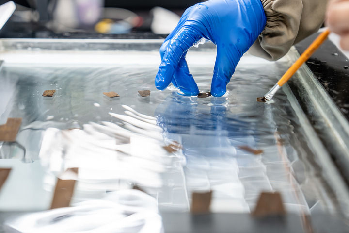 云南省文物考古研究所工作人員在清理木簡(2025年4月24日攝)。新華社記者 胡超 攝