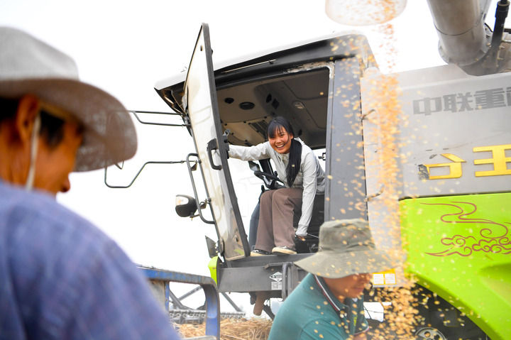 “以前開老式收割機,經常掉粒丟穗。今年換的新型小麥聯合收割機,功率更大、密封性更好,機收損失率降到了1%以內?!便肷峡h白石鎮農機手李念波說。
