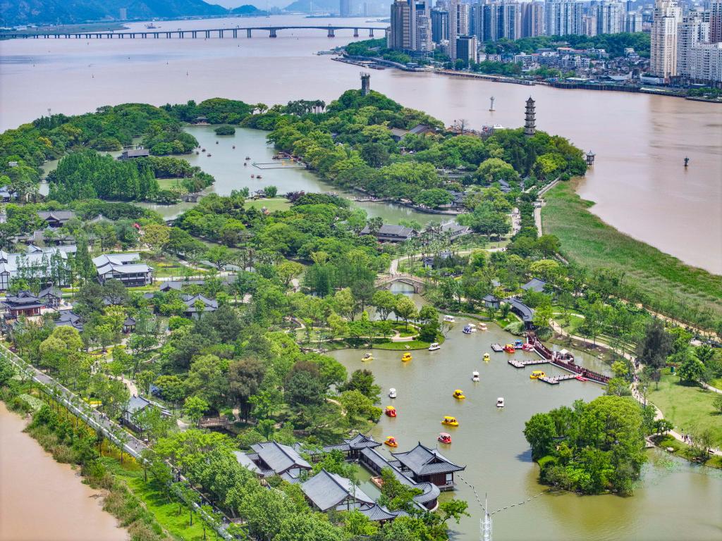 浙江省溫州市鹿城區江心嶼景區(無人機照片,2025年5月1日攝)。新華社發(蘇巧將攝)