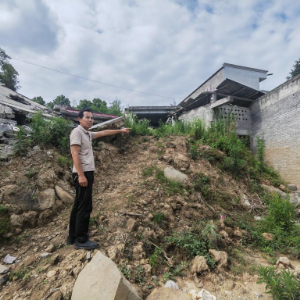2025年5月28日,貴州丹寨縣南皋鄉烏皋村三組因強降雨發生山體滑坡,造成群眾房屋損毀。(受訪者供圖)